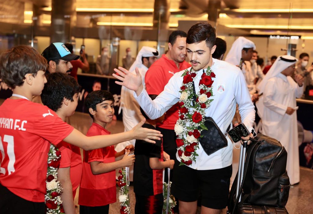 الدوحة : رؤيةسبورت– حظيت بعثة فريق الريان العائدة من الرياض بالمملكة العربية السعودية باستقبال حافل من الريانيين عقب تأهل الفريق إلى الدور ثمن النهائي من دوري أبطال آسيا والظهور المشرف للكرة القطرية الذي قدمه الفريق ومكنه من بلوغ المرحلة التالية من دوري الأبطال.