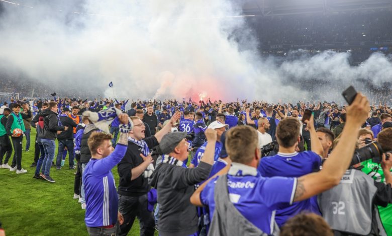 تعرض عدة مشجعين لفريق شالكه لإصابات لدى نزول نحو ألفي مشجع إلى أرضية الملعب للاحتفال بصعود الفريق من جديد إلى دوري الدرجة الأولى الألماني لكرة القدم (بوندسليجا).