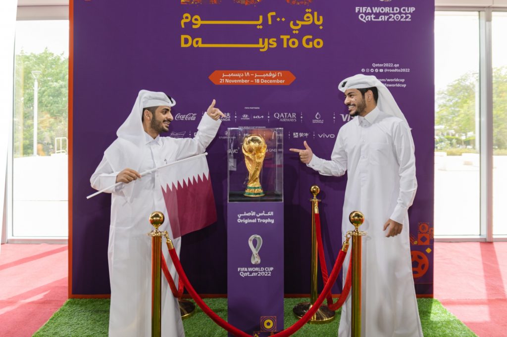 الدوحة : رؤيةسبورت– شهدت مدينة مشيرب قلب الدوحة مساء اليوم، توافد آلاف المشجعين الذين اغتنموا الفرصة لمشاهدة الكأس الأصلية لبطولة كأس العالم التي حلّت في وقت سابق من اليوم في جامعة قطر وفي ملتقى مركز طلاب المدينة التعليمية، وكذلك في بيت محمد بن جاسم ضمن الجولة الترويجية للكأس التي بدأت في 5 مايو الجاري في أنحاء قطر.