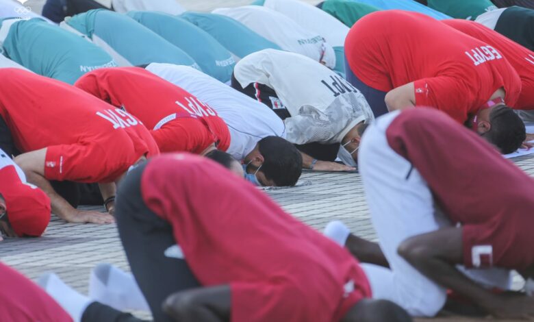 الرياضيون المسلمون يؤدون صلاة العيد في القرية الأولمبية