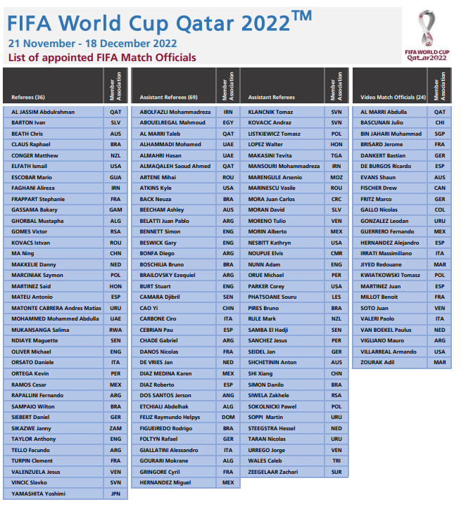 الفيفا يعلن أسماء حكام كأس العالم قطر 2022