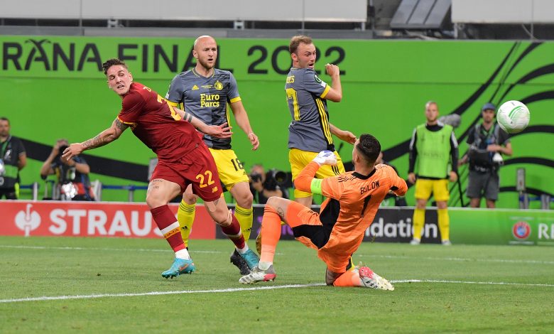 حقق فريق روما الإيطالي لقبه الأوروبي الأول في تاريخه بعد فوزه الأربعاء في العاصمة الالبانية تيرانا على فينورد الهولندي 0/1 في المباراة النهائية للنسخة الأولى من بطولة دوري المؤتمر الأوروبي تحت قيادة المدرب البرتغالي جوزيه مورينيو الذي اعاد البطولات الأوروبية إلى الكرة الإيطالية بعد عقد من الزمان ، كما أضاف مورينيو مجدا جديدا بفوزه بهذه النسخة الأولى ليحصد الألقاب الأوروبية الثلاثة.