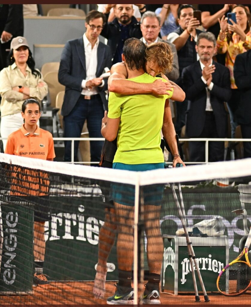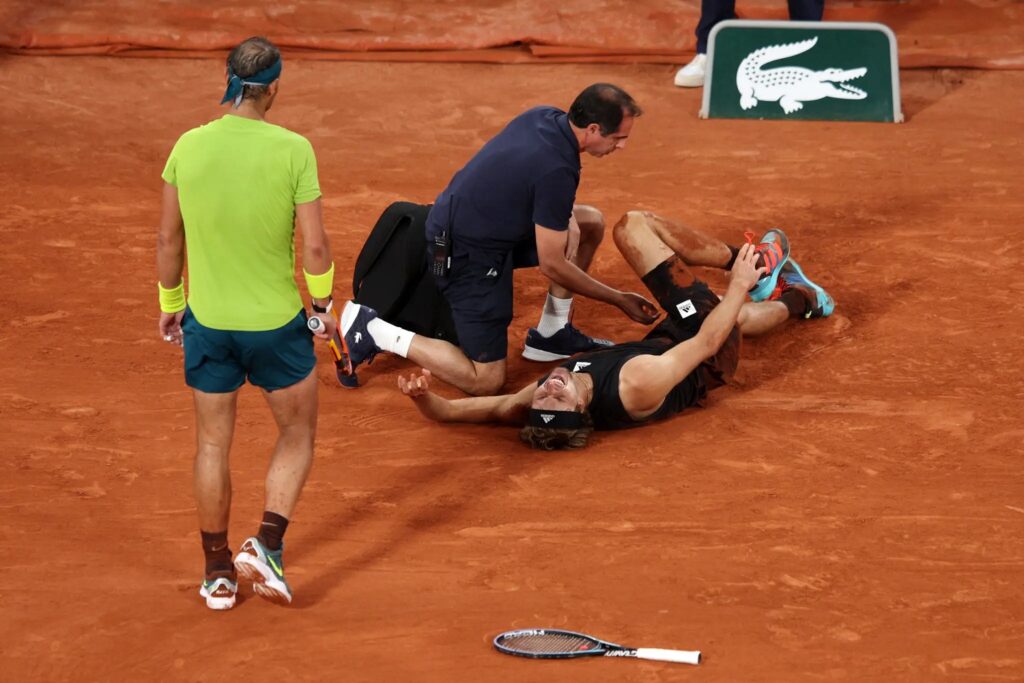 وحسم نادال الذي يحتفل الجمعة بميلاده السادس والثلاثين، المجموعة الأولى بصعوبة بالغة 7-6 (10-8) ثم عانى كل من اللاعبين على إرساله في المجموعة الثانية التي وصلت الى شوطها الثاني عشر والتعادل 6-6، قبل أن يتعرض زفيريف لإصابة قوية في كاحله الأيمن ما اضطره لمغادرة الملعب على كرسي متحرك قبل أن يعود لاحقاً على عكازين لإعلان انسحابه.
