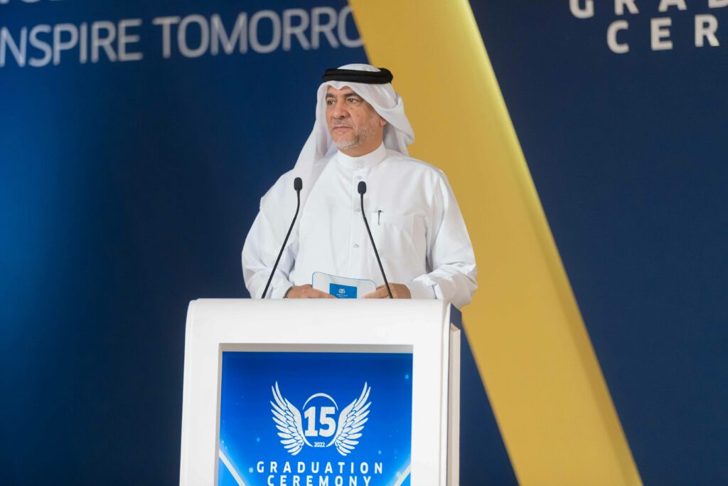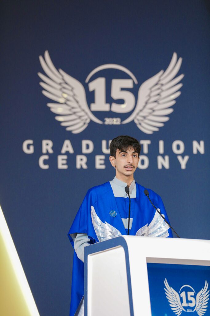 وفي كلمة ألقاها باسم كل طلاب الخامسة عشرة، قال الطالب الخريج عبد الرحمن أحمد النعمة : ” عشنا في أكاديمية أسباير العديد من السنوات الجميلة ولقد حصدنا ثمار سنوات من الجد والاجتهاد، لقد كانت محطتنا في أكاديمية أسباير مميزة فهي من أكثر المحطات إشراقا في حياتنا وكانت نقطة تحول في حياتنا جميعا ، لقد مررنا بتحديات كبيرة جراء الجائحة ولكن تمكنا بفضل الله وبفضل إدارتنا ومدرسينا ومدربينا في الأكاديمية من التغلب عليها وتخطيها بمرونة واحترافية. وأتقدم بالشكر والتحية لجميع المدرسين والمدربين والإداريين الذين دعمونا طوال مسيرتنا في الأكاديمية ونعدهم بأننا سنكون خير سفراء لأكاديمية أسباير ونكون مصدر فخر لهم جميعا .”