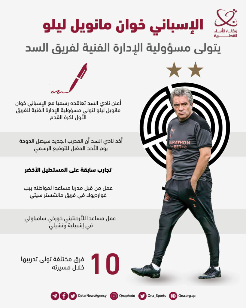 وذكر الحساب الرسمي لنادي السد على موقع التواصل الاجتماعي “تويتر” :”خوان مانويل ليلو مدرباً للزعيم بداية من الموسم المقبل 2022 / 2023 ،