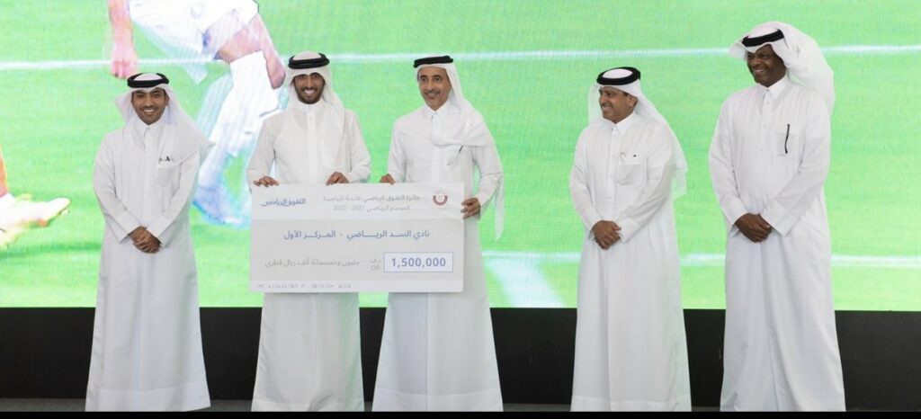 وسلم سعادة السيد صلاح بن غانم العلي وزير الرياضة والشباب السيد تركي العلي المدير التنفيذي لنادي السد درع التفوق العام للموسم 2021-2022 ، وذلك للمرة 19 على التوالي والـ20 في تاريخ النادي ؛ كما سلم جائزة المركز الثاني لسعادة الشيخ تميم بن فهد آل ثاني رئيس النادي العربي، والمركز الثالث للسيد علي سالم عفيفة نائب رئيس نادي الريان.