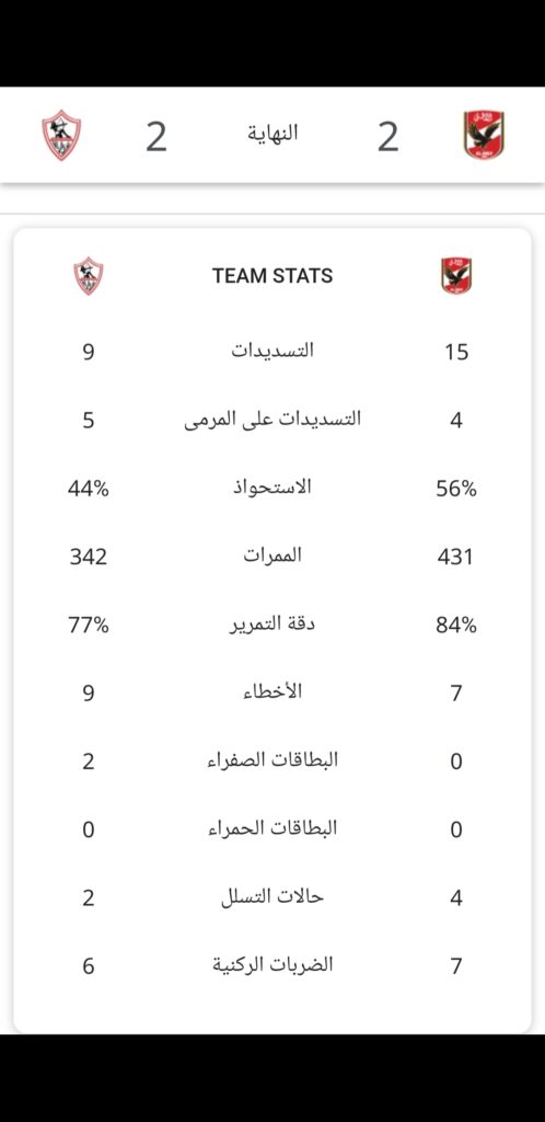 الأهلي والزمالك يتعادلان 2/2 في القمة 124 للكرة المصرية