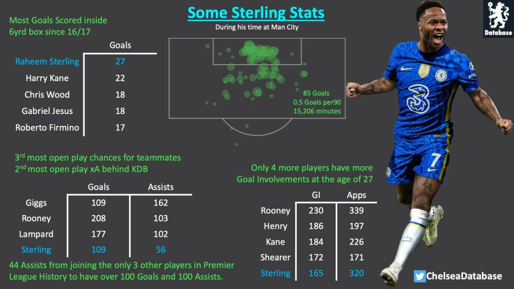 وحقق سترلينغ لقب الدوري الإنجليزي أربع مرات مع السيتي منذ انضمامه من ليفربول في 2015، وسجل 131 هدفا في 337 مباراة.
