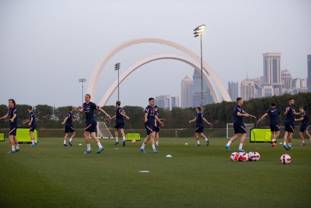 الولايات المتحدة: مرسى ملاذ كمبينسكي اللؤلؤة (الدوحة، جزيرة اللؤلؤة قبالة ساحل الدوحة)، التدريبات بملعب استاد الغرافة.