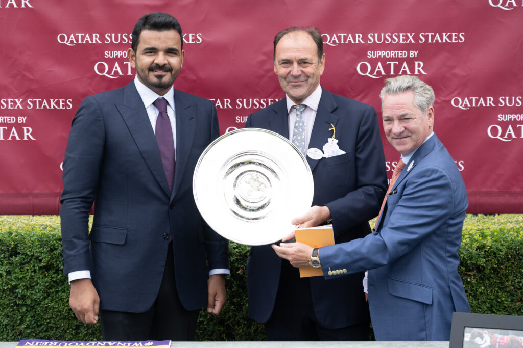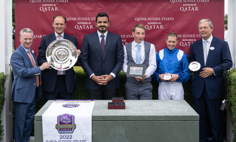 لندن : توج سعادة الشيخ جوعان بن حمد آل ثاني، رئيس اللجنة الأولمبية القطرية، الفائزين في أهم وأكبر أشواط اليوم الثاني لفعاليات مهرجان قطر غودوود 2022 لسباقات الخيل، التي انطلقت أمس الأول وتستمر حتى يوم /السبت/ المقبل على مضمار غودوود التاريخي الشهير في بريطانيا، وبرعاية قطرية خالصة منذ العام 2015، بمجموع جوائز مالية حوالي 5 ملايين ونصف المليون جنيه إسترليني.