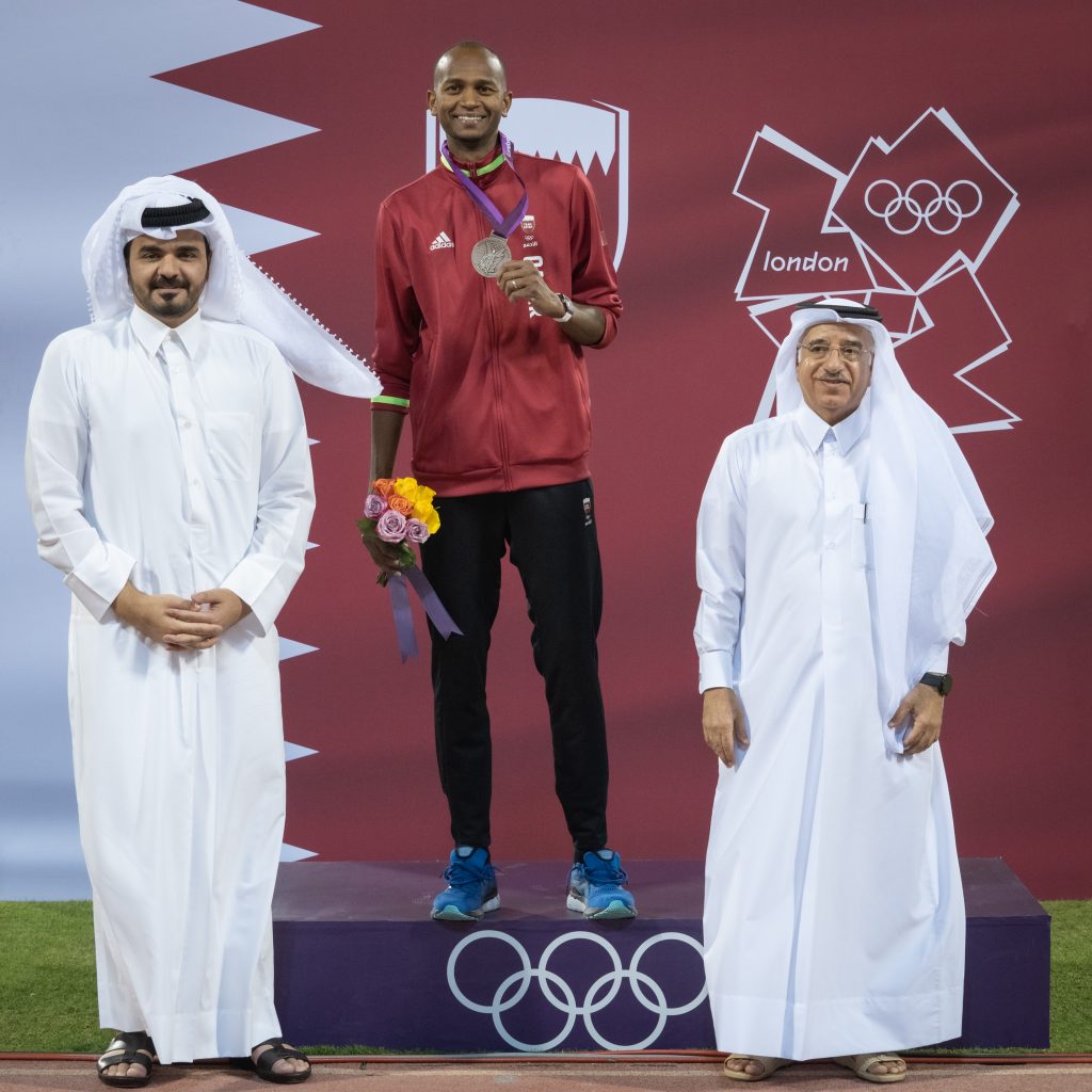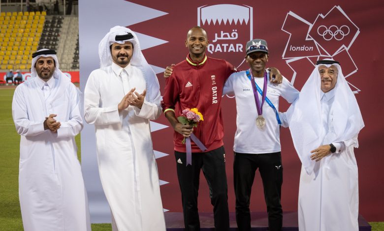 الدوحة : سلم سعادة الشيخ جوعان بن حمد آل ثاني رئيس اللجنة الأولمبية القطرية، البطل الاولمبي معتز برشم مساء الجمعة الميدالية الفضية لدورة الالعاب الاولمبية لندن 2012، وذلك على هامش استضافة الدوحة لأولى جولات الدوري الماسي لعام 2022.