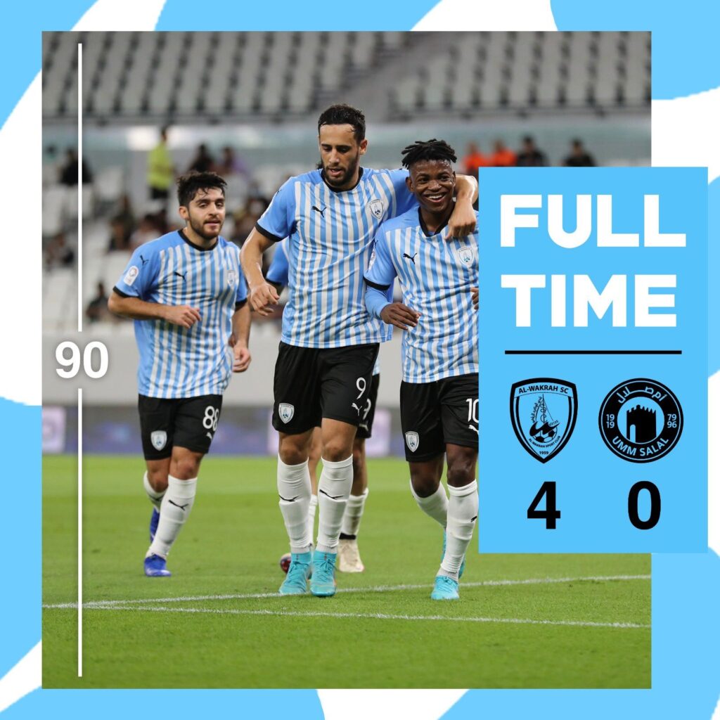 فاز الوكرة على ام صلال بأربعة أهداف نظيفة في المباراة التي جمعت الفريقين اليوم ضمن الجولة الثالثة من الدوري القطري لكرة القدم.