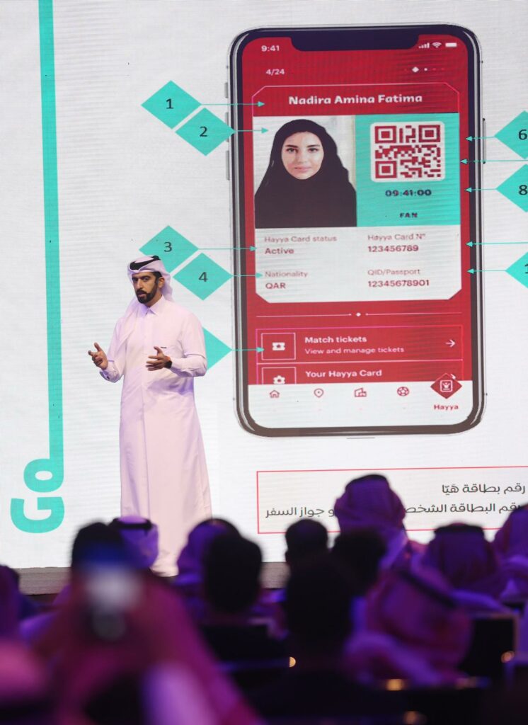 بعدها قام السيد سعيد الكواري بتعريف الجماهير السعودية ببطاقة هيا والغرض منها ومميزاتها ومن بينها الدخول للبلاد للمشجعين القادمين من الخارج، ودخول الاستادات، واستخدام وسائل النقل خلال المباريات، وكذلك تجربة المشجع عبر تطبيق هيا الذكي والذي يتيح للجماهير معلومات مفصلة عن التنقل والوجهات السياحية والمباريات والعديد من المزايا.