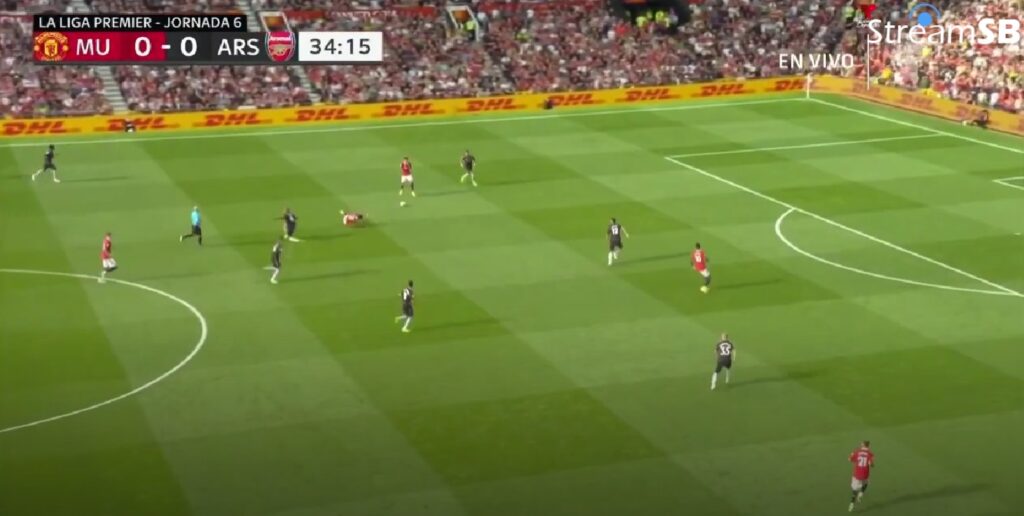 شوط المباراة الأول انتهى على وقع هدف أنتوني، برغم استمرار الفريق اللندني في محاولاته الباحثة عن التعديل، وهو ما استحقه بعد ربع ساعة من بداية الشوط الثاني. هدف أرسنال كان نتاجًا للضغط الذي مارسه الفريق، وهو ما استحقه بعد وصوله المتكرر لمنطقة جزاء اليونايتد. هنا تحدّثنا الأرقام بأن عدد لمسات غابرييل مارتينلي للكرة داخل منطقة جزاء اليونايتد 9 مرات، تجاوز إجمالي لمسات لاعبي اليونايتد للكرة داخل منطقة جزاء أرسنال 8. أما ساكا فلمس الكرة 8 مرات داخل الصندوق، و سجل تشاكا وجيسوس 7 لمسات لكل لاعب في حين اكتفى مارتين أوديغارد بلمس الكرة 6 مرات داخل منطقة الجزاء.