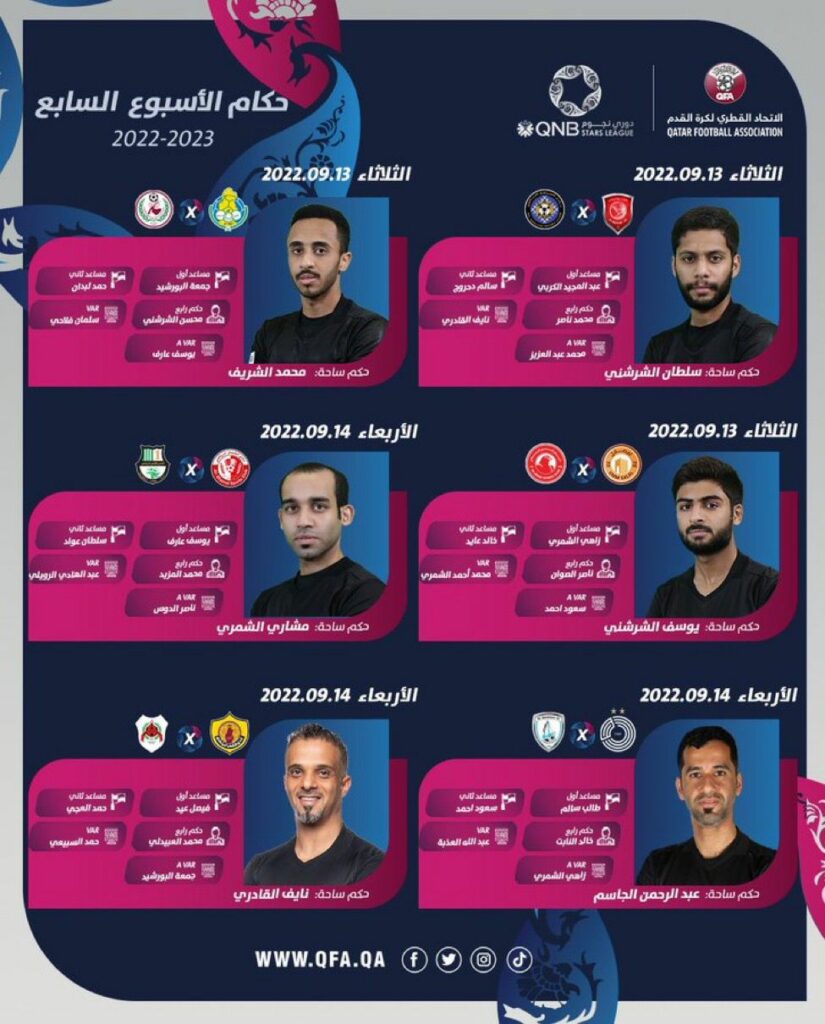 الدوحة: تفتتح يوم غد الثلاثاء مباريات الجولة السابعة من الدوري القطري لكرة القدم (دوري نجوم QNB) للموسم الكروي ( 2022 – 2023 ).