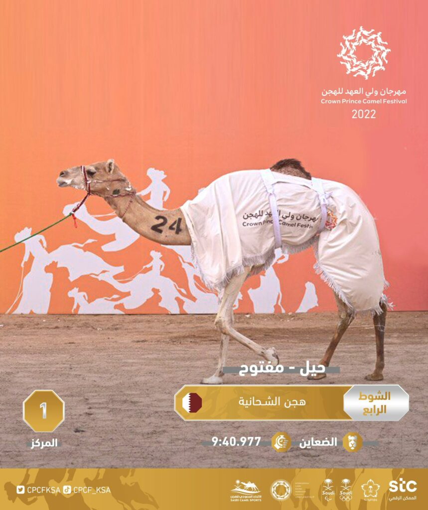 وأكدت الهجن القطرية تفوقها الكبير في مثل هذه المناسبات الكبرى، حيث نجحت في حصد الفوز الأهم، وهو السيف الذهبي للحيل مفتوح، عن طريق “الظعاين” /ملك هجن الشحانية/ بعد أن تصدرت الشوط الرابع للسباق مسجلة توقيتا زمنيا قدره (9.40.97 دقائق)، متفوقة على “غزوة” /ملك هجن سيح السلم /التي حلت بمركز الوصافة مسجلة توقيتا زمنيا قدره (9.44.60 دقائق)، فيما كان المركز الثالث من نصيب “كيان” /ملك هجن المرقاب/ بتوقيت زمني قدره( 9.46.00 دقائق).