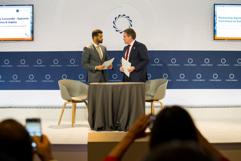 يشار إلى أن قمة كونكورديا السنوية انطلقت في العام 2011، وتشهد مشاركة أبرز قادة الأعمال والحكومات والمؤسسات غير الربحية في العالم، وتهدف إلى إيجاد طرق مبتكرة لمناقشة قضايا العالم الأكثر إلحاحاً، وإيجاد سبل التعاون، وتعزيز الحوار، وبناء الشراكات الفاعلة، بهدف إحداث الأثر الإيجابي في المجتمعات. وتتطرق قمة هذا العام إلى عدد من الموضوعات من بينها الاستدامة البيئية وحقوق الإنسان والنمو الاجتماعي والتقنيات المبتكرة.