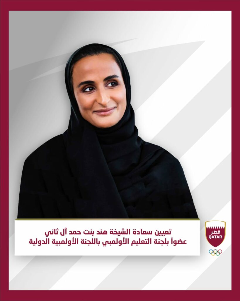 وقالت سعادة الشيخة هند بنت حمد آل ثاني: “يسعدني أن تقوم اللجنة الأولمبية الدولية بتعييني عضوا بهذه اللجنة المهمة.. أؤمن إيمانا راسخا بقدرة التعليم على تشكيل حياتنا وتقوية مجتمعاتنا وبناء عالم أفضل.. تعد الرياضة في جوهرها شكلا من أشكال التعليم حيث تساهم في غرس المبادئ الأولمبية كالتميز والاحترام والصداقة من أجل بناء مجتمع أكثر تسامحا”.