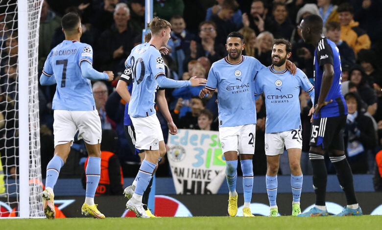 وضمن منافسات المجموعة السابعة، فاز مانشستر سيتي الإنجليزي على ضيفه كوبنهاغن الدنماركي بخمسة أهداف دون رد، سجلها إيرلنغ هالاند هدفين في الدقيقتين (7- 32)، ودافيت خوشولافا بالخطأ في مرمى فريقه (39)، ورياض محرز (55)، وجوليان ألفاريز (76)، ليتصدر مانشستر سيتي المجموعة برصيد (9) نقاط، وتوقف رصيد كوبنهاغن عند نقطة واحدة.