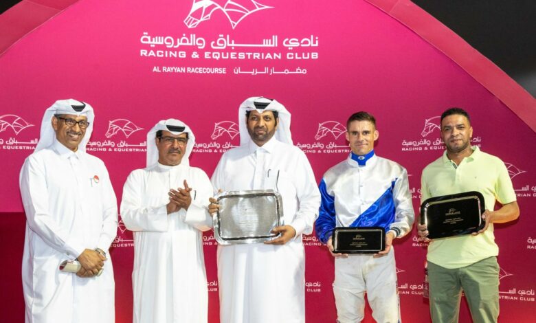 وانضم الحصان /المخضرم/، ملك الشيخ فيصل بن حمد بن جاسم بن ثاني آل ثاني، للفائزين بفوارق كبيرة في سباق اليوم حيث فاز بالمركز الأول في الشوط الثالث المخصص للخيل المهجنة الأصيلة إنتاج محلي المبتدئة والفائزة بسباق لمسافة 1200 متر بفارق 4 أطوال ونصف، مع المدرب خالد الأحمد والخيال ألبرتو سنا.