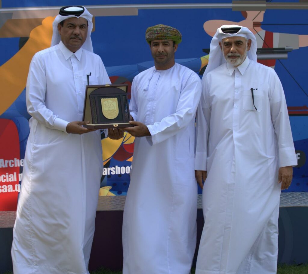 و قدم الاتحاد القطري للرماية والقوس والسهم درع تذكاري لرئيس البعثة العمانية امين السر العام محمد سليمان الهطالي والى ممثل الاتحاد اللبناني للرماية والصيد الرامي سامر سركيس وشهد حفل تقديم الدروع ماجد احمد النعيمي رئيس اللجنة المنظمة للبطولة بالإضافة الى أعضاء مجلس الإدارة وأعضاء لجان المنتخبات الوطنية بالإضافة الى عدد من جمهور ومتابعي اللعبة .