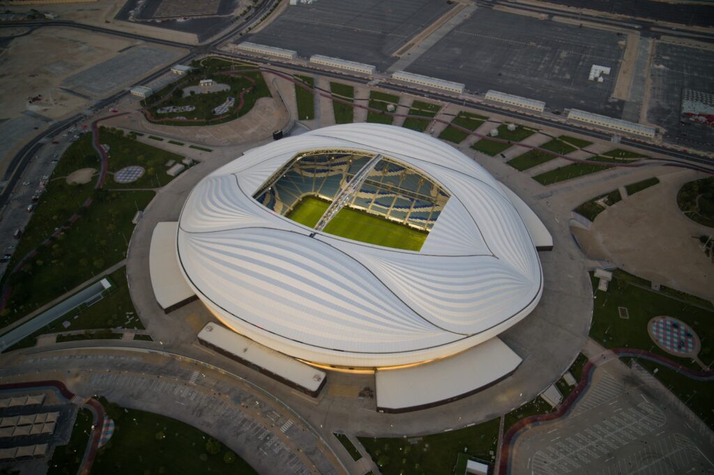 ويحتفي استاد الجنوب، الذي يتسع لـ 40 ألف مشجّع، بالتراث البحري لمدينة الوكرة وتاريخها العريق، بتصميم رائع مستلهم من أشرعة القوارب التقليدية التي حملت القطريين قديماً إلى عرض البحر للصيد والغوص بحثاً عن اللؤلؤ.