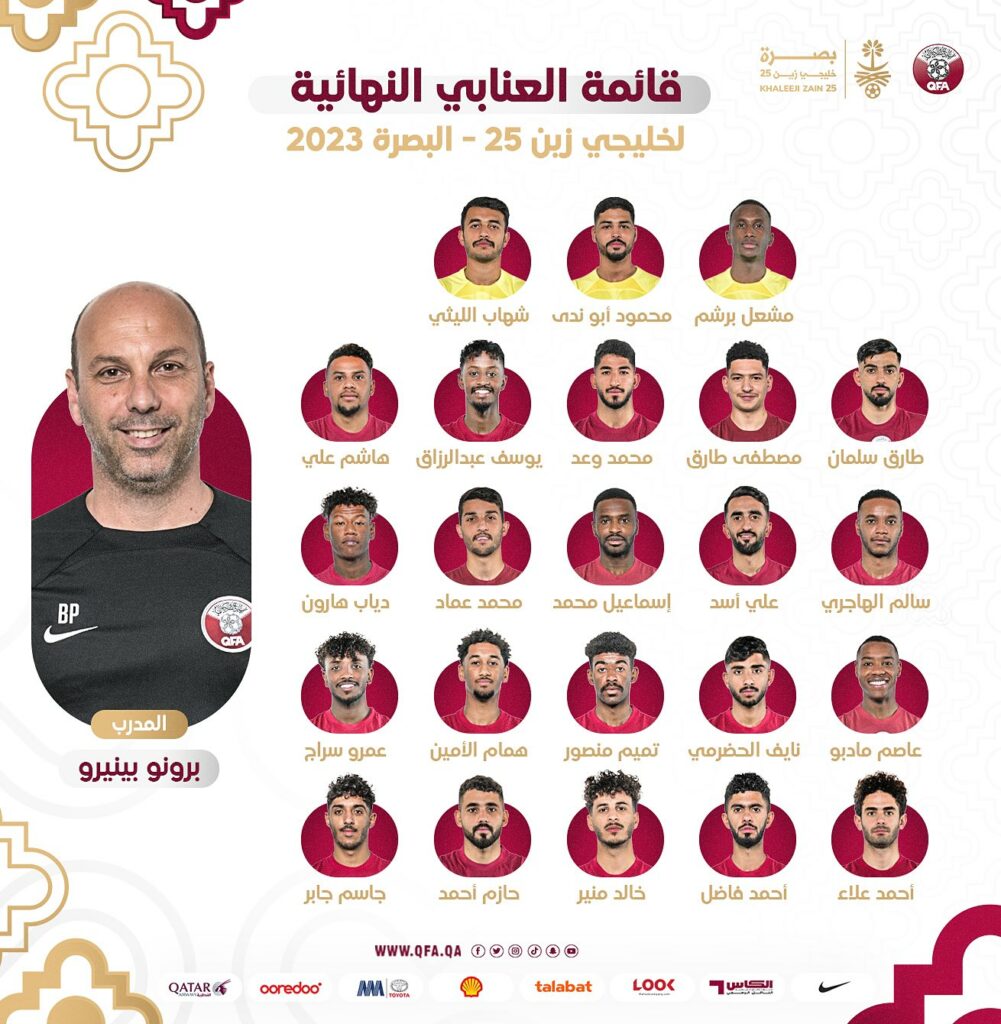 الدوحة : أعلن البرتغالي برونو ميغيل بينيرو، المدير الفني للمنتخب القطري لكرة القدم، القائمة النهائية التي ستخوض غمار النسخة الخامسة والعشرين من كأس الخليج العربي التي تقام بمدينة البصرة العراقية خلال الفترة ما بين 6 و19 من الشهر الجاري.