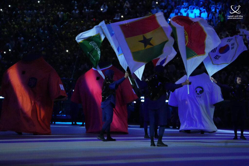 الدوحة : شهد حفل افتتاح بطولة كأس العالم FIFA قطر 2022 الذي أقيم اليوم باستاد البيت المونديالي مزجاً فريداً بين عبق الشرق بنكهة قطرية خالصة وبين حداثة الغرب بإيقاعه السريع، وتميّزت فقرات الحفل الذي سبق المباراة الافتتاحية بين منتخبي قطر المستضيف والإكوادور ضمن المجموعة الأولى بإبهار بصري لم تشهده افتتاحيات بطولة كأس العالم من قبل، واستخدمت فيها أحدث تكنولوجيات الإضاءة والصوت والخدع البصرية في انسجام دقيق مع حركة التصوير والمجاميع والجمهور في أرضية الملعب وفي المدرجات.