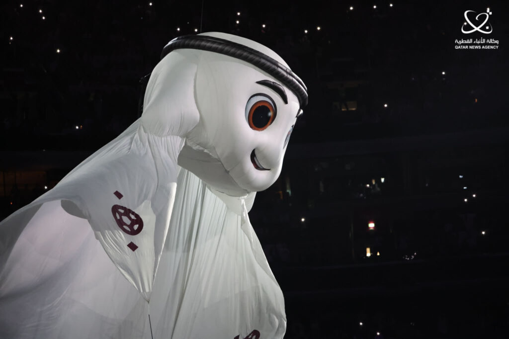 وعرضت الشاشات في استاد البيت أبرز اللحظات التي لا تنسى في كؤوس العالم الماضية ممزوجة بعناصر فنية مثل تعويذات بطولات كؤوس العالم الـ 10 الرسمية بشكل ضخم، في استحضار تجسيدي لفكرة مسلسل الرسوم المتحركة المصغر “عالم التعويذات” الذي تم إصداره لكأس العالم FIFA قطر 2022.