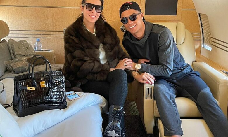 ونشر رونالدو صورة له من داخل طائرته، تجمعه بزوجته جورجينا، خلال مغادرة البرتغال، وكتب عليها: “بغض النظر عن المكان الذي نسافر إليه، أشعر دائمًا أنا وعائلتي في البرتغال بأنني في المنزل”.