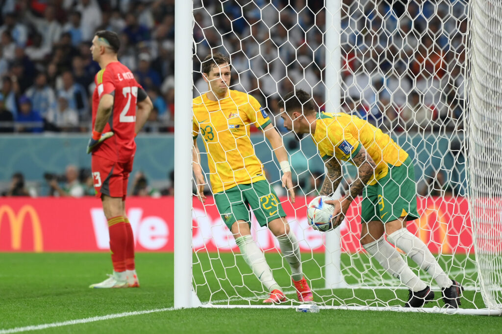وحاول المنتخب الأسترالي فيما تبقى من عمر الشوط الأول، القيام بردة فعل، متخليا بعض الشيء عن تراجعه الدفاعي لكنه لم يكن في مأمن من الهجمات العكسية، فكاد ألفاريس أن يضيف هدفا ثانيا من تمريرة ميسي الطويلة، لكن يقظة الحارس ماثيو ريان أنهت الخطورة في الدقيقة 42، لينتهي الشوط الأول على وقع تقدم أرجنتيني بهدف دون رد.