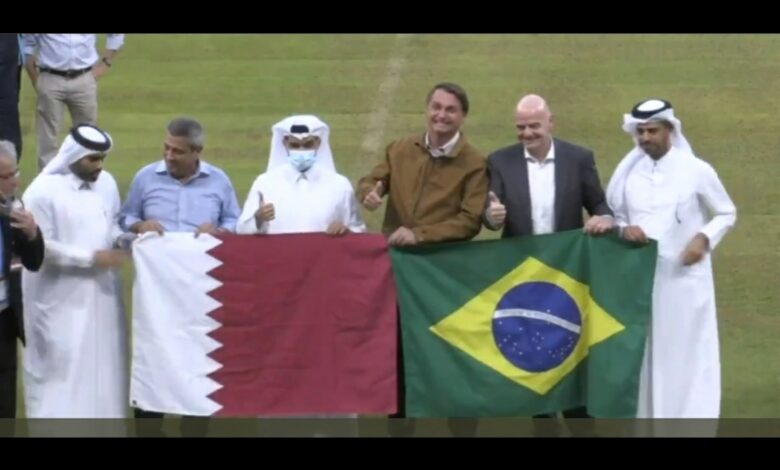 قنا : قام فخامة الرئيس جايير بولسونارو رئيس جمهورية البرازيل الاتحادية، وسعادة السيد جياني إنفانتينو رئيس الاتحاد الدولي لكرة القدم /FIFA/ اليوم الاربعاء بزيارة ملعب لوسيل أحد ملاعب بطولة كأس العالم FIFA قطر 2022، وذلك على هامش زيارته الرسمية والوفد المرافق للبلاد.