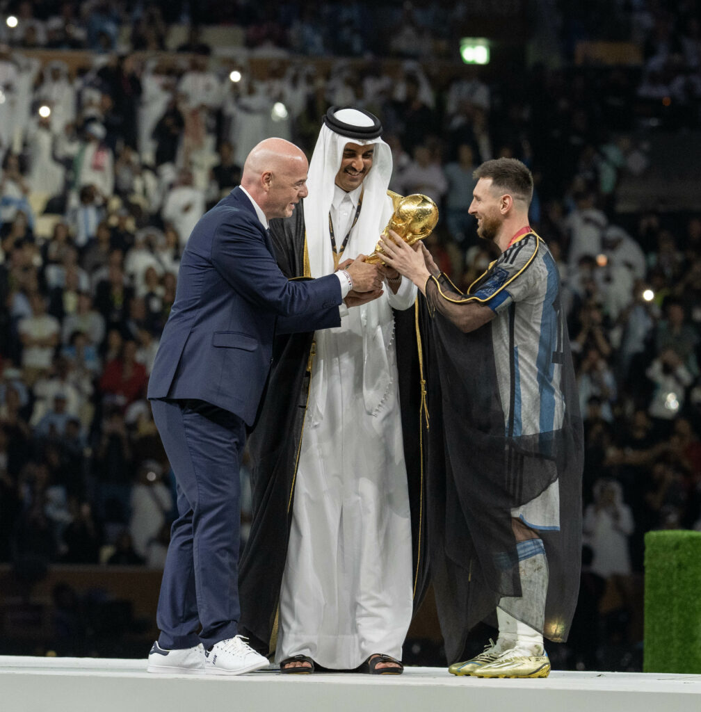الدوحة: توج حضرة صاحب السمو الشيخ تميم بن حمد آل ثاني أمير البلاد المفدى، منتخب الأرجنتين لكرة القدم الفائز ببطولة كأس العالم FIFA قطر 2022 على منتخب فرنسا لكرة القدم بركلات الترجيح بنتيجة 4 – 2 في المباراة النهائية التي أقيمت في استاد لوسيل مساء اليوم.