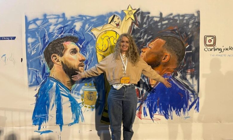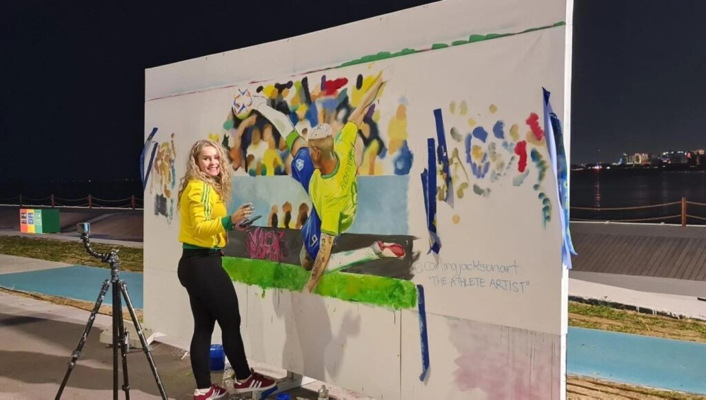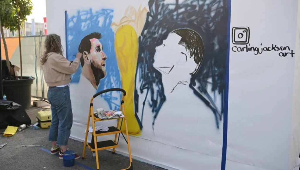الدوحة: بأعمال فنية رائعة ولوحات جدارية متفردة، تمكنت الفنانة الكندية كارلينج جاكسون من تطويع موهبتها الفنية لتخليد أبرز اللحظات الرياضية والأحداث والمحطات المهمة في نهائيات بطولة كأس العالم FIFA قطر 2022 .