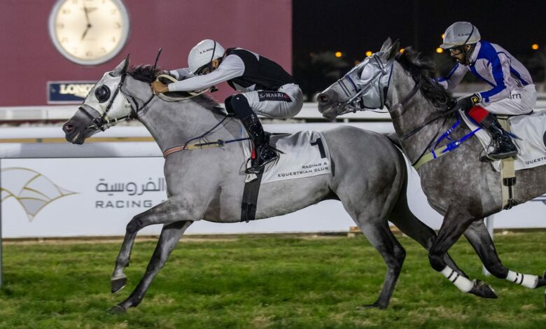 وحققت المهرة “الورقة” ملك سعادة الشيخ فيصل بن حمد بن جاسم بن ثاني آل ثاني، الفوز بالمركز الأول في الشوط الثاني للخيل المهجنة الأصيلة إنتاج محلي – المبتدئة لمسافة 1200 متر، بإشراف المدرب محمد خالد الأحمد، وبقيادة الخيّال ألبرتو سنا.