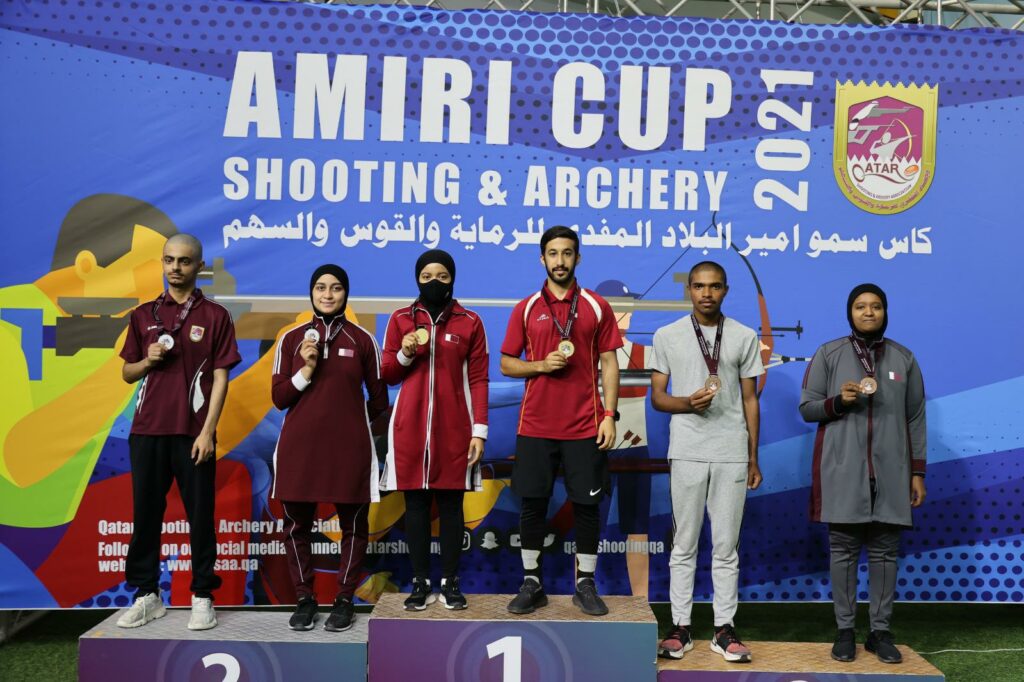 تواصلت على مجمع ميادين لوسيل للرماية منافسات التحدي والاثارة والتشويق لبطولة كاس سمو امير البلاد المفدى للرماية والقوس بمشاركة واسعة من جميع رياضي الادعم وشهدت منافسات اليوم قبل الاخير للبطولة في مسابقات المسدس الهوائي لمسافة عشرة امتار مختلط تحقيق محمد المعاضيد ونصرة محمد المركز الاول واسامة الشيبة وكوانتينلا سليجر المركز الثاني وعلي مرشد والعنود الكعبي المركز الثالث ، وفي مسابقات البندقية الهوائية لمسافة عشرة امتار هوائي مختلط جاء في المركز الاول عبدالله السنيدي والجوهرة الكواري والمركز الثاني من نصيب عبدالرحمن الشرشني وعائشة السويدي والمركز الثالث خالد الشرشني ومطرة العسيري .