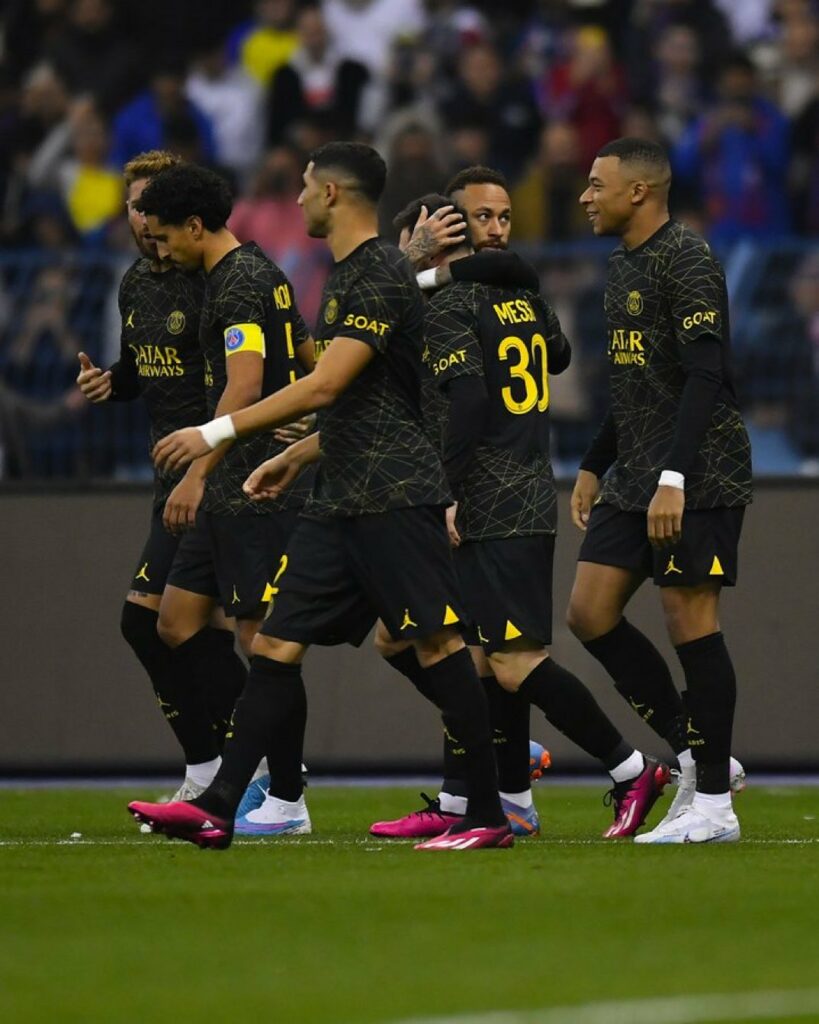 وسجل أهداف باريس سان جيرمان كل من ليونيل ميسي في الدقيقة (9)، وماركينوس (43)، سيرخيو راموس (53)، كليان مبابي (60) من ركلة جزاء، هوغو ايكيتيتي (78)، بينما سجل أهداف/ نجوم الهلال والنصر/ كريستيانو رونالدو هدفين في الدقيقتين (34 من ركلة جزاء، و45)، وهيون سو جانغ (56)، وأندرسون تاليسكا (90).