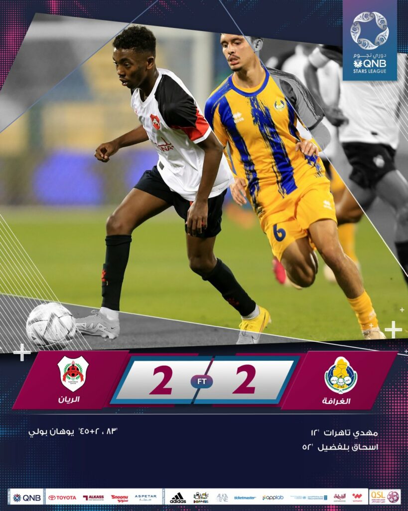 وحصل كل فريق على نقطة، حيث وصل الغرافة للنقطة 13، في المقابل الريان وصل للنقطة الخامسة.