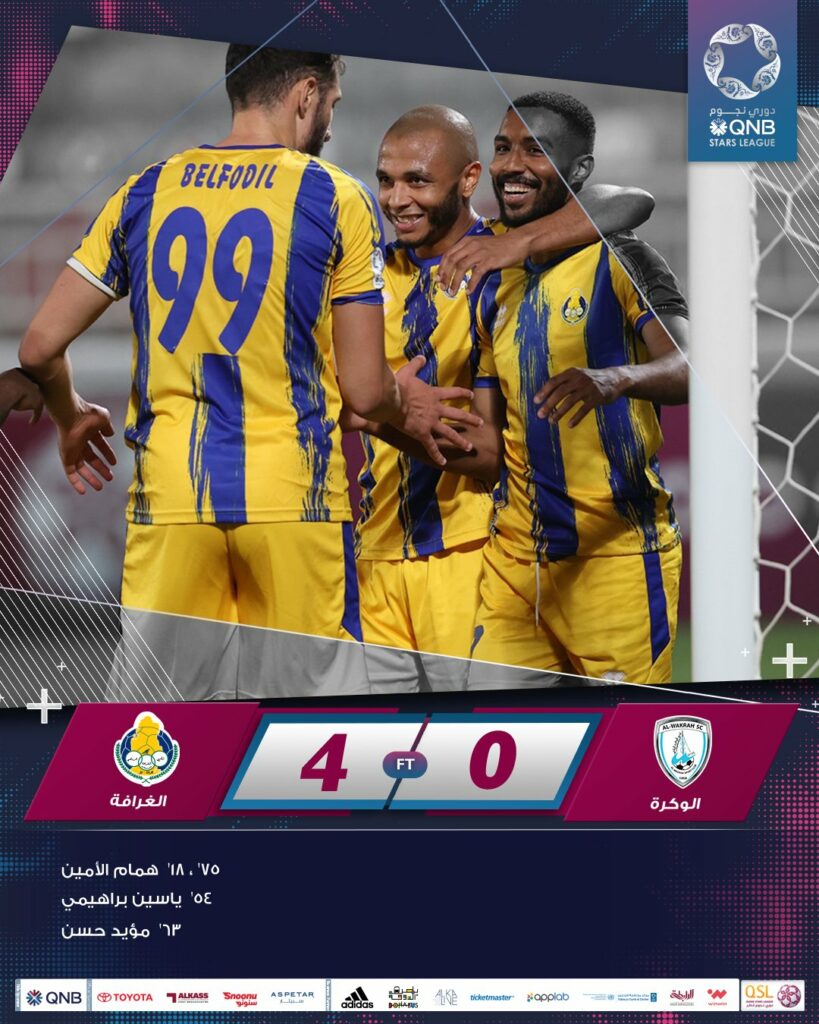 وسجل للغرافة: همام الأمين (هدفان)، وياسين إبراهيمي، ومؤيد حسن في الدقائق 18 و54 و63و75.