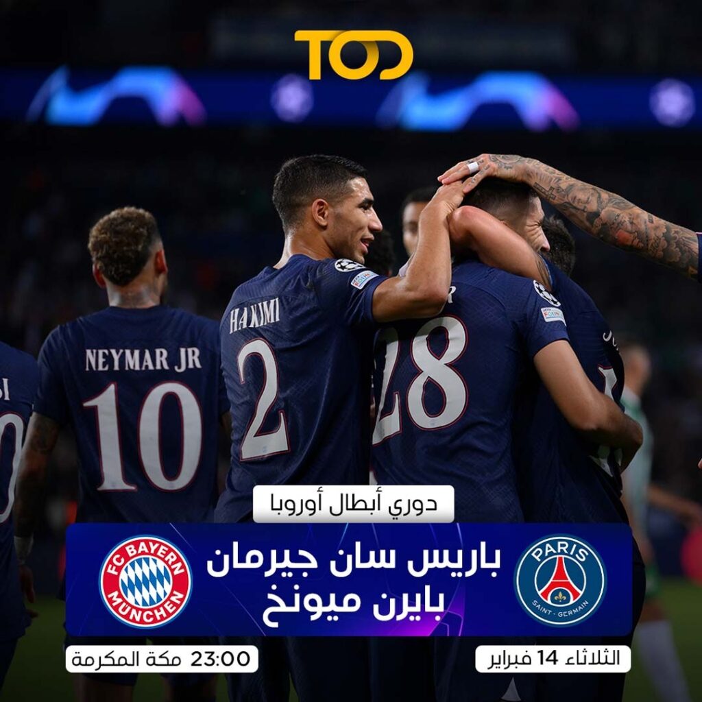 يوم 14 فبراير، يمكن لعشاق كرة القدم الانتقال إلى الجولة ال 16 من مرحلة خروج المغلوب من دوري أبطال أوروبا UEFA. وبجانبه، العمالقة الإيطاليين فريق إيه سي ميلان سيواجه توتنهام هوتسبير اللندني في ملعب سان سيرو مع حضور قائد الفريق الإنجليزي هاري كين الذي أصبح مؤخراً الهداف التاريخي لنادي توتنهام. ويشهد ملعب بارك دي برانس في الوقت نفسه مواجهةً قوية ومتساوية القوى بين باريس سان جيرمان وبايرن ميونيخ، يعتمد فيها النادي الفرنسي على نجوم كأس العالم كيليان مبابي وليونيل ميسي لتحقيق الانتصار. ويمكن لعشاق كرة القدم حضور المباراتين في وقتٍ واحد عن طريق منصة TOD، لا سيما بفضل ميزة المشاهدة من البداية والجداول الزمنية التفاعلية والاستمتاع بأبرز اللقطات بعد المباراة.