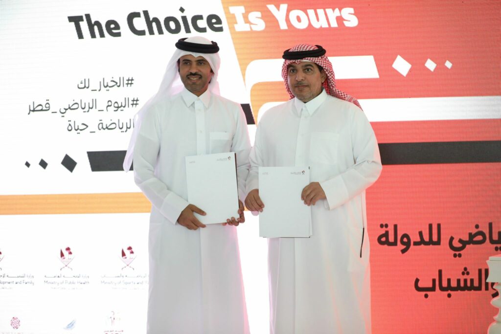 أعلن عبد الرحمن بن مسلم الدوسري رئيس لجنة اليوم الرياضي للدولة، ومستشار وزير الرياضة والشباب ، ان النسخة الحالية من اليوم الرياضي للدولة 2023 ، التي سوف تنتظم جميع انحاء البلاد غدا الثلاثاء تقام هذا العام تحت شعار ” الخيار لك ” كما شهد مقر وزارة الرياضة والشباب بصالة لوسيل الرياضية ظهر امس التوقيع على مبادرة برنامج الاطار الوطني وخطة العمل لتحسين النشاط البدني لكبار السن في دولة قطر بالتعاون مع وزارة الصحة العامة، بحضور علي الخاطر رئيس لجنة الاتصال العليا للرعاية بوزارة الصحة والرئيس التنفيذي للاتصال المؤسسي، كما حضر المؤتمر عدد من مدراء الإدارات بوزارة الرياضة والشباب والشركاء وممثلي وسائل الأجهزة الإعلامية المختلفة.
