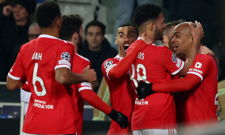 وفي المباراة الثانية، وضع بنفيكا البرتغالي إحدى قدميه في الدور ربع النهائي بعد فوزه على مضيفه كلوب بروج البلجيكي بهدفين نظيفين على ملعب “جان برايدال” بمدينة بروج.