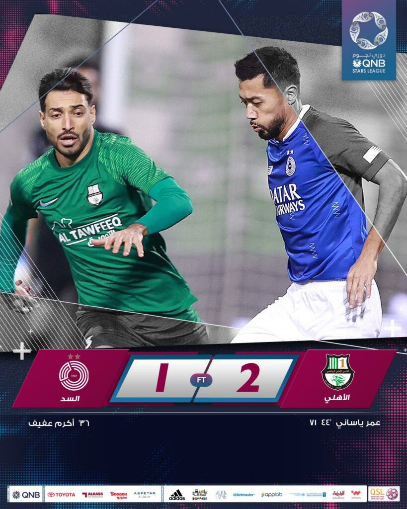 وكان الأهلي قد خسر في الأسبوعين الماضيين أمام الدحيل والريان، قبل أن يستعيد نغمة الفوز مرة أخرى، في المقابل خسر السد للمرة الأولى بعد العودة من التوقف إثر سلسلة من الانتصارات والتي وصلت إلى 5 مباريات متتالية في الدوري.