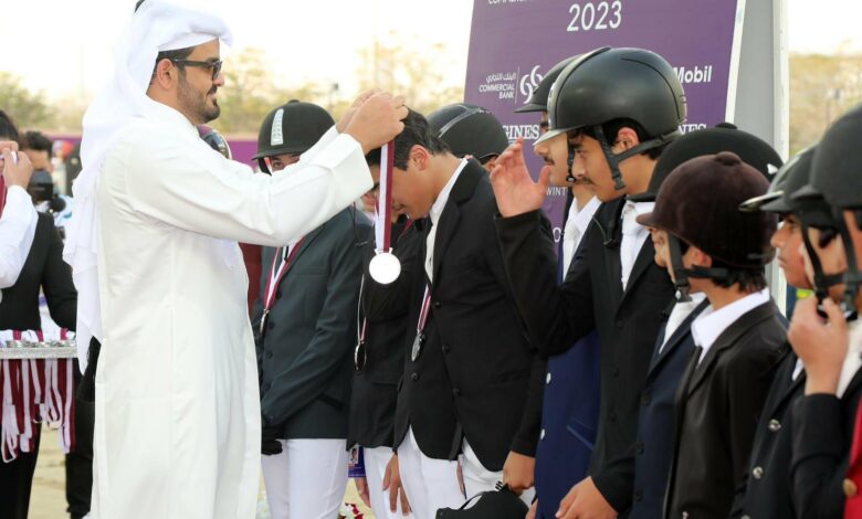 الدوحة : توج سعادة الشيخ جوعان بن حمد آل ثاني رئيس اللجنة الأولمبية القطرية الفائزين في جولة ( الفرسان الصغار) التي أقيمت مساء اليوم ضمن فعاليات اليوم الثاني من بطولة البنك التجاري الدولية – الشقب برعاية لونجين 2023 ، التي ينظمها الشقب – عضو مؤسسة قطر للمرة العاشرة على التوالي بمشاركة أفضل فرسان العالم في قفز الحواجز والترويض، والترويض لذوي الاحتياجات الخاصة.