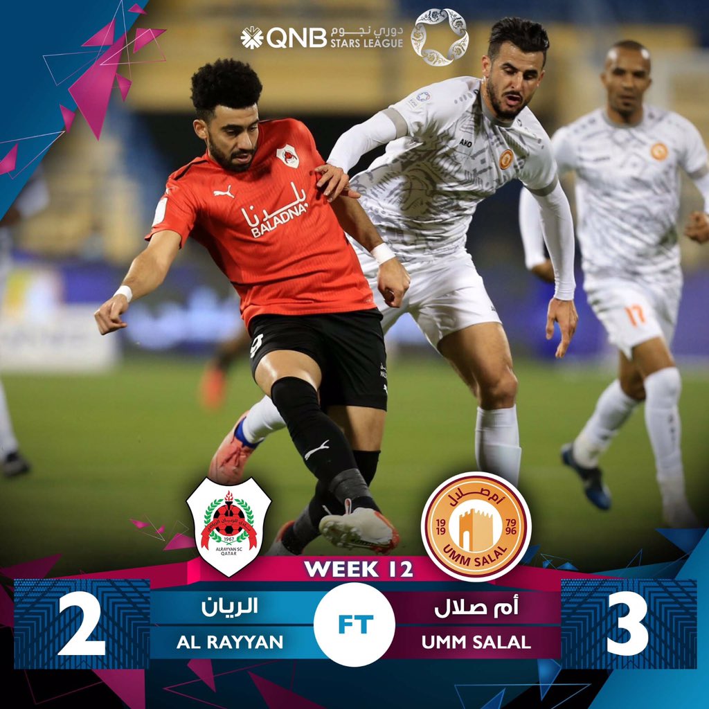 واصل فريق أم صلال ” صقور برزان ” بقيادة المدرب الوطني وسام رزق سلسلة نتائجه المميزة في الفترة الأخيرة وحقق الفوز الرابع على التوالي في دوري نجوم QNB للموسم 2021- 2022، حيث تغلب على الريان بثلاثة أهداف مقابل هدفين، خلال المباراة التي جرت بينهما ضمن الأسبوع الثاني عشر، والتي أقيمت مساء اليوم الثلاثاء ، على استاد ثاني بن جاسم بنادي الغرافة.