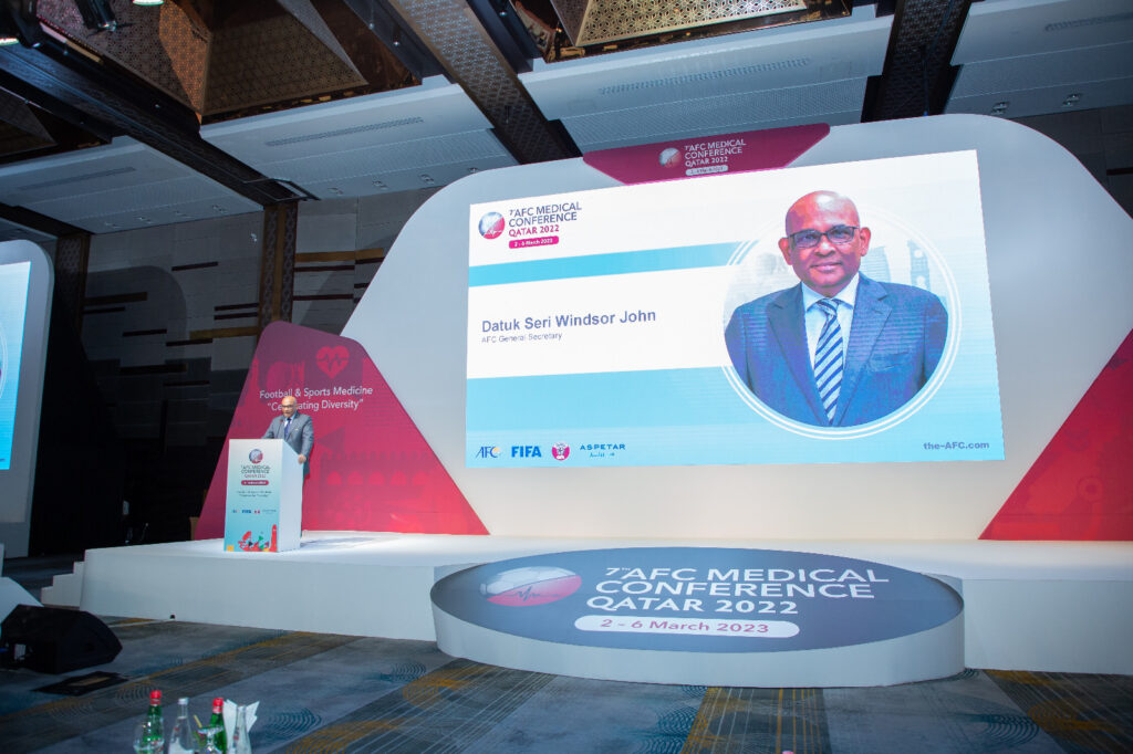 وقال السيد داتوك سيري ويندسور جون الأمين العام للاتحاد الآسيوي لكرة القدم: “إن المؤتمر الطبي السابع للاتحاد الآسيوي لكرة القدم يضع نجاح اللاعبين والفرق من قارة آسيا في قمة أولوياته، مشيرا إلى أن علوم الرياضة والطب الرياضي وصحة اللاعبين تعتبر أساسية لضمان نجاح كرة القدم الآسيوية”.