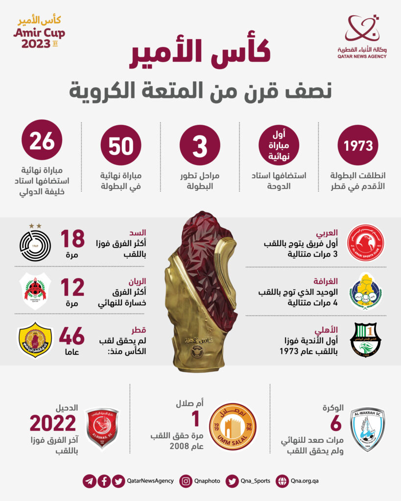 الدوحة: على مدار نصف قرن من الزمان، شهدت بطولة كأس سمو الأمير المفدى لكرة القدم، العديد من الأحداث المثيرة وتنافسا محموما على اللقب أشعل الصراع للوصول إلى منصة التتويج، حتى أصبحت واحدة من أهم البطولات التي تقام سنويا على الملاعب القطرية.