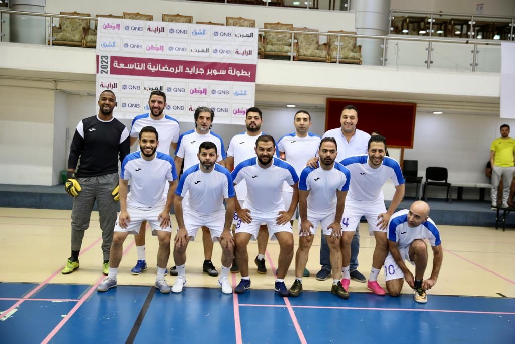 وأضاف ان المباراة الختامية سوف تقام يوم السبت على صالة النادي العربي وسوف تبدا مراسم التتويج الساعة 4:15 بحضور شخصيات رياضية وإدارية بارزة من اللجنة الأولمبية القطرية تكريما لرجال الصحافة والاعلام لما يقدمونه من خدمات تبرز دور جميع قطاعات الدولة ومنها القطاع الرياضي خاصة ان هذه البطولة هي الوحيدة التي تجمع رجال الصحافة والاعلام في أجواء رياضية جميلة يصنعون فيه الحدث بأنفسهم بعد ان كانوا يقومون بنقل وتغطية الاحداث الرياضية في مختلف الميادين والملاعب. وقال اننا نقدم الشكر والتقدير لكافة الجهات التي شاركت في البطولة وقدمت افضل المباريات والمستويات ولم يحالفها التوفيق في الوصول للدور قبل النهائي واخص بالذكر جريدة الراية وقناة الكاس وفناة بي ان سبورت ووكالة الانباء القطرية فقد كانت مشاركتهم إضافة واثراء للبطولة التي سوف تختتم يوم السبت.