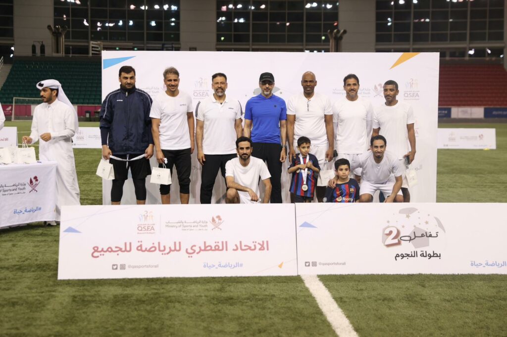قام سعادة السيد صلاح بن غانم العلي، وزير الرياضة والشباب، بتتويج أبطال بطولة “النجوم” الرمضانية لكرة القدم، التي ينظمها الاتحاد القطري للرياضة للجميع، تحت مظلة وزارة الرياضة والشباب، وشارك في تتويج الأبطال، وتكريم الحكام والمشاركين في البطولة، السيد عبد الرحمن بن مسلم الدوسري، مستشار وزير الرياضة والشباب، رئيس الاتحاد القطري للرياضة للجميع، كما شهد الختام بعض الجماهير التي حرصت على متابعة منافسات البطولة منذ إنطلاقها خلال الاسبوعين الماضيين، تحت قبة اسباير، وقد اجريت منافسات المشهد الختامي، عقب صلاة التراويح مساء أمس الأول السبت، من خلال المباراة النهائية، التي شهدت مشاركة مميزة من نجوم الكرة القطرية القدامى والفنانين والشباب، الأمر الذي منح البطولة نكهة خاصة، وهي تعيد النجوم الكبار إلى المستطيل الأخضر من جديد.