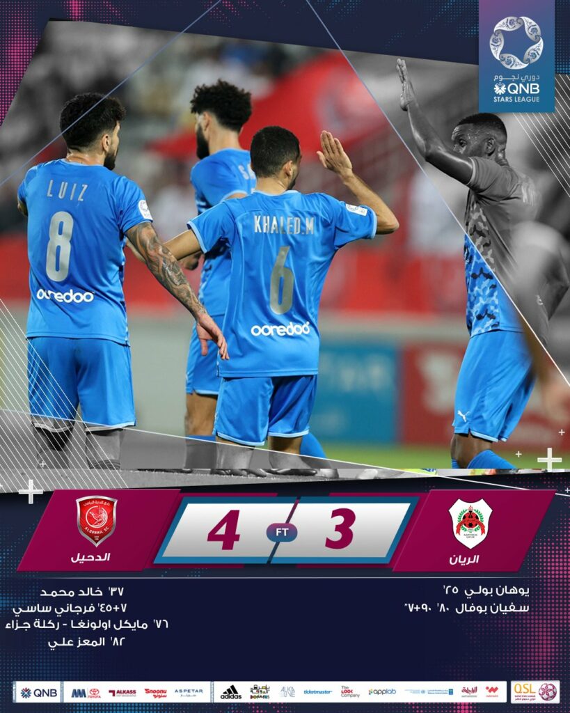 الدحيل يستعيد الانتصارات ويتخطى الريان برباعية